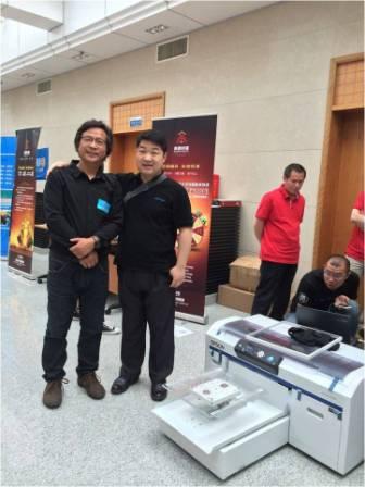年會現(xiàn)場,愛普生F2080t恤衫印花機(jī)的表現(xiàn)不負(fù)眾望,打印的t恤衫色彩效果得到藝術(shù)設(shè)計攝影界觀眾的一致好評,我為公司也為愛普生F2080樹立了良好的形象,作為Epson大中華區(qū)華北區(qū)和華南區(qū)的獨家代理,在展會現(xiàn)場,公司銷售人員及技術(shù)人員熱情地回答和專業(yè)的機(jī)器操作,都給與會觀眾留下了極好的印象,樹立了專業(yè)的公司形象。