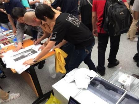國際攝影大師楊延康老師在運源代理Epson F2080 T恤印花機(jī)打印的自己作品上簽名,并連連夸贊設(shè)備的優(yōu)秀表現(xiàn)