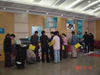 總體感覺邯鄲廣告市場(chǎng)比較成熟,展會(huì)前我們拜訪了邯鄲幾個(gè)有名的噴繪公司如晨光廣告、勝吉廣告公司和花之雨等。通過和他們交流,他們普遍認(rèn)為噴繪價(jià)格價(jià)格比較低,但是還不至于到通過價(jià)格來拼客戶的地步,同時(shí)認(rèn)為機(jī)器的選擇是很重要的。他們憑借著MIMAKI噴繪機(jī)的良好性能和自己的智慧能力一直服務(wù)于很多有名的客戶如中國(guó)移動(dòng)等。這些客戶談及MIMAKI都贊不絕口。和晨光廣告公司的蔡總交談了解到,他們先前買過別人的一臺(tái)第四代的B品牌微壓電寫真機(jī),剛開始幾個(gè)月使用還可以,后來就出現(xiàn)很多問題,后來購(gòu)買了我們一臺(tái)MIMAKI,同時(shí)表示如果這個(gè)機(jī)器賣出去會(huì)再買一臺(tái)MIMAKI,因?yàn)樗麄冇X得MIMAKI 噴繪機(jī)性能比較穩(wěn)定,機(jī)器比較專業(yè)。