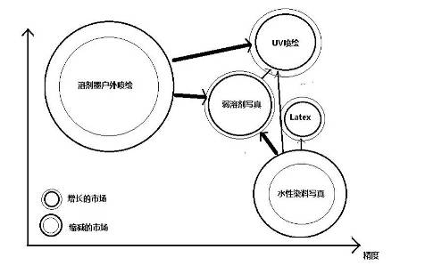 4. 基于UV墨水的平板打印機(jī)市場,噴繪沒有涂層的材料,多種應(yīng)用,以替代傳統(tǒng)絲網(wǎng)印刷為主。