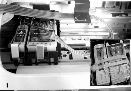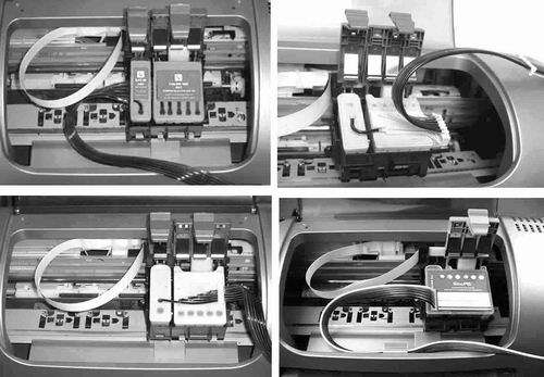 上面提到的連續(xù)供墨各品牌產品基本上都是“傻瓜式”的安裝辦法,按照說明書操作即可。但是,很多初次接觸的用戶過不了這一關,因為它并不是想象的“如安裝墨盒一樣簡單”,難點就在于墨盒芯片對位、排管的具體走向和固定。