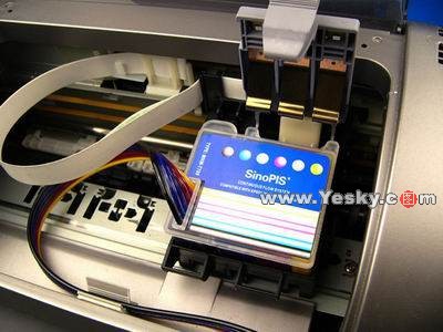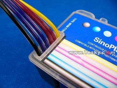 無海綿墨盒配以硅膠管線和各色外墨盒蓋,組成連續(xù)供墨系統(tǒng)的內(nèi)部部分,當(dāng)然也少不了永久長效芯片。