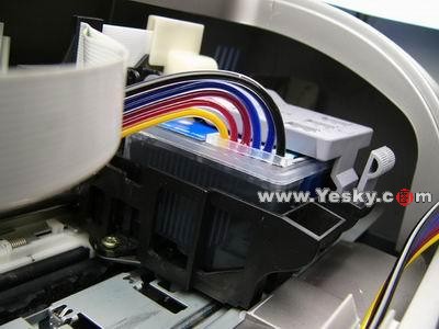通過這樣的設(shè)計,可以使用墨盒所帶的原裝的墨盒蓋,這樣使得系統(tǒng)的穩(wěn)定性進(jìn)一步提高,另外這種走線也可以讓打印機的蓋子蓋上有效的防塵,提高打印機的使用壽命和打印質(zhì)量