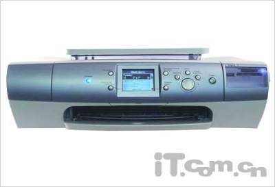 愛普生 Stylus Photo R310,它是一款全面配合數(shù)碼相機(jī)的照片打印機(jī),在外型上相對(duì)于前文介紹的那款HP機(jī)型的確龐大了不少,不過在功能性上也有增加了許多,這也是該款照片打印機(jī)的一大特色。它可以脫離PC進(jìn)行獨(dú)立照片打印,共有獨(dú)立插卡、有線、紅外或藍(lán)牙無線三種照片輸入方式。